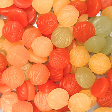 Ingredients: glucose syrup, sugar, starch, acid (citric acid), vegetable oils (coconut, rapeseed), flavourings, glazing agent (beeswax), colours (E160e, E141, E160a).